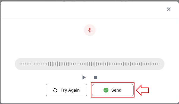 Once the message is recorded, click on the Send button. Or click Try Again to re-record.
