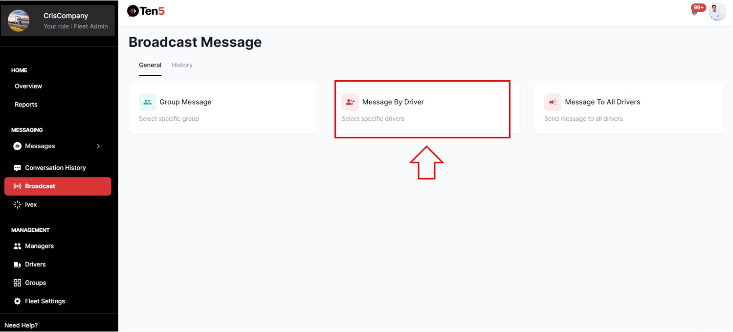 Log in as fleet admin user and on the left side choose the Broadcast option.