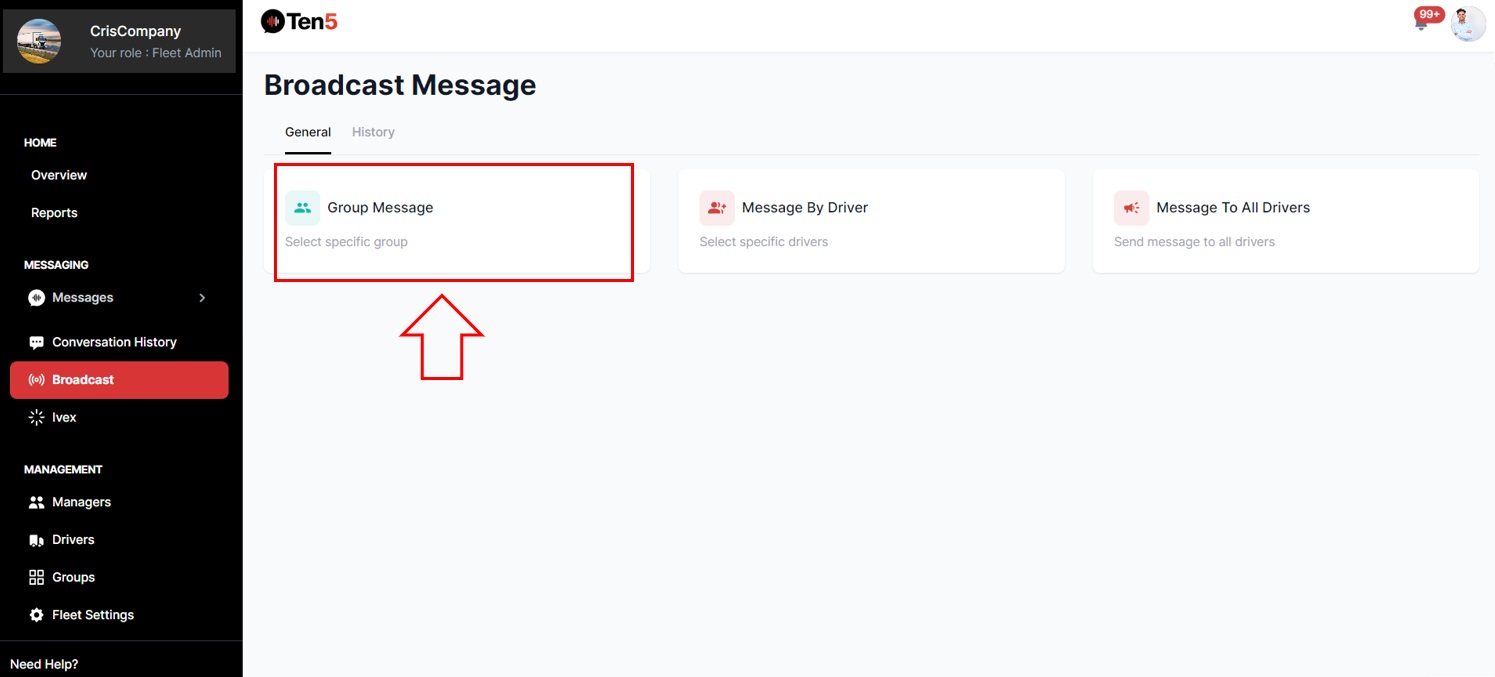 Log in as fleet admin user and on the left side choose the Broadcast option.