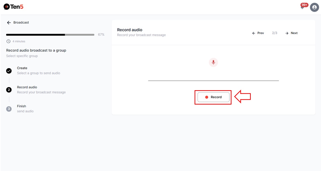 Click on the Record button to record the message, if you want re-record click Try Again. Once the message is recorded, click on the Next button.
