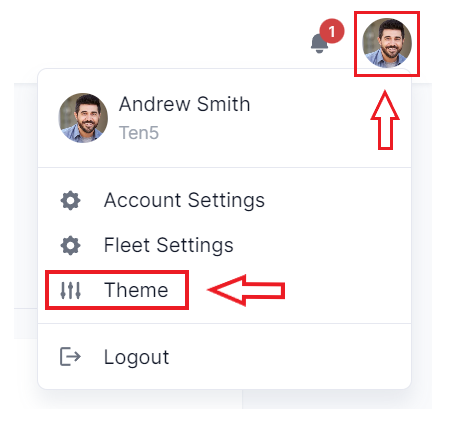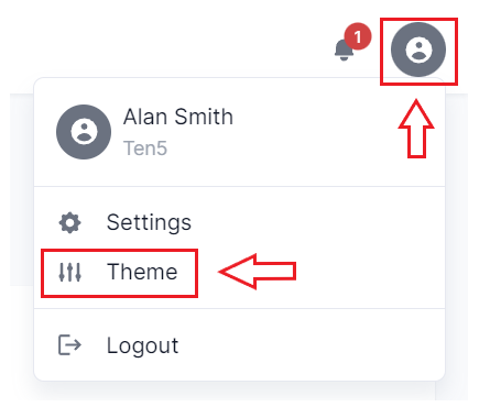 On the top right of the page, click on the user icon and select Theme.