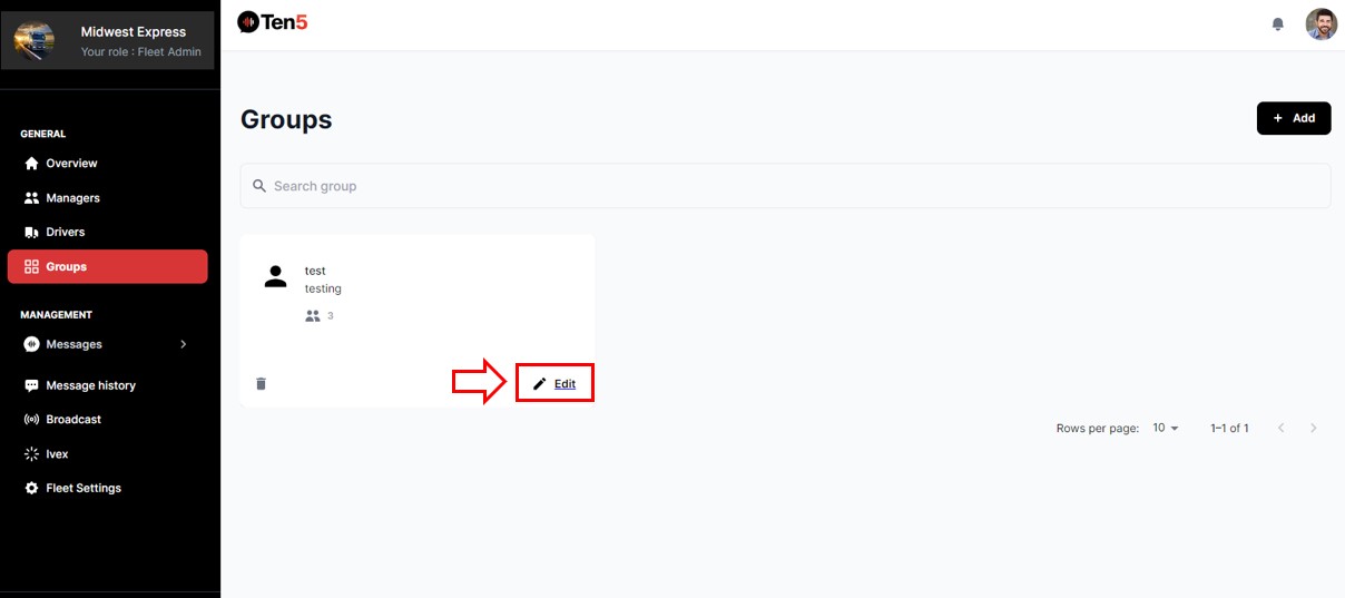 Log in as fleet admin user and on the left side choose the Groups option. Select to the Edit button in the group to be edited.