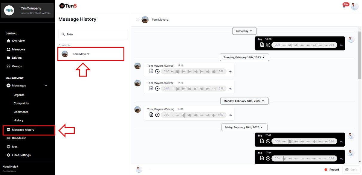 MessagesAccessing message historyAccessing message historyOn the left side, choose the Message history option and select a driver.