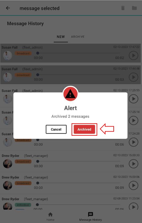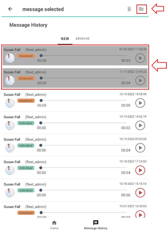 To archived a message, select the messages to be archived and press the folder icon on top. You can select one or more messages to archived.