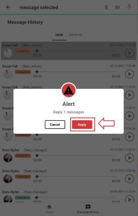 A popup alert will be displayed with the two buttons. Select the Reply button.
